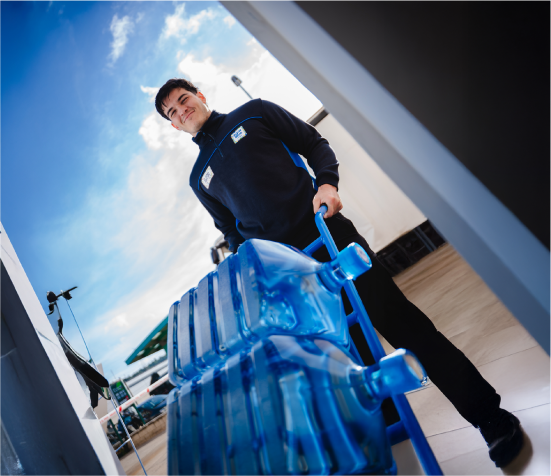 Entregamos nuevas botellas y recogemos las vacías para reutilización e higienización, cerrando el ciclo sostenible.